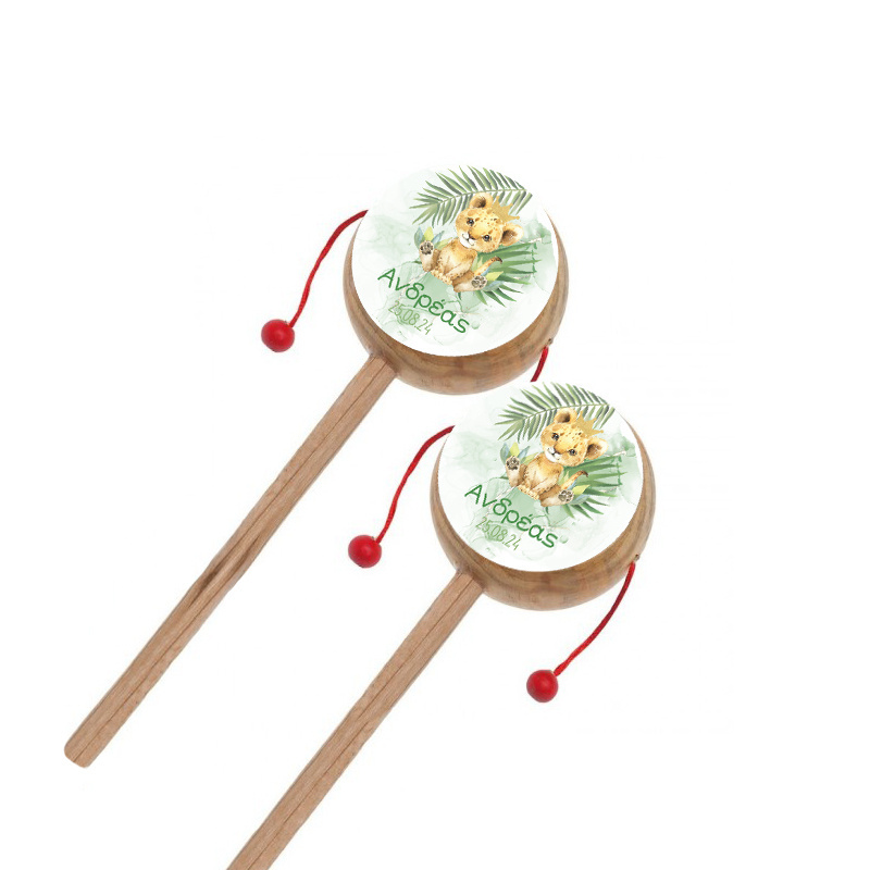 Ξύλινο natural τυμπανάκι με αυτοκόλλητο Τιγράκι με Κορώνα και το όνομα του παιδιού σας.