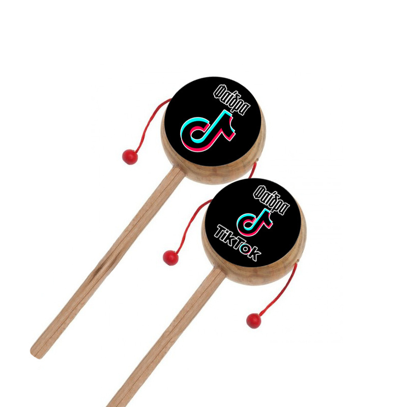 Ξύλινο natural τυμπανάκι με αυτοκόλλητο TikTok και το όνομα του παιδιού σας.