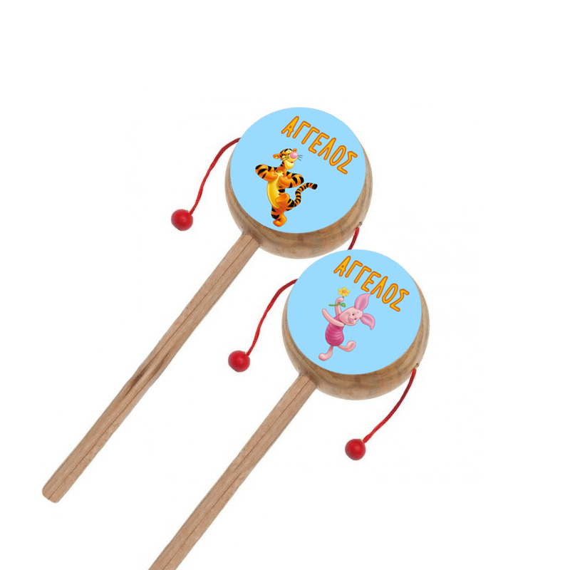 Ξύλινο natural τυμπανάκι με αυτοκόλλητο Winnie και το όνομα του παιδιού σας.