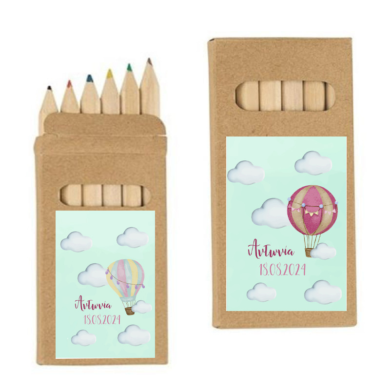 Σετ Ξυλομπογιές 6τμχ Αερόστατο με όνομα ένα υπέροχο δωράκι για τους μικρούς μας φίλους. Για την Βάπτιση και το Πάρτι σας.