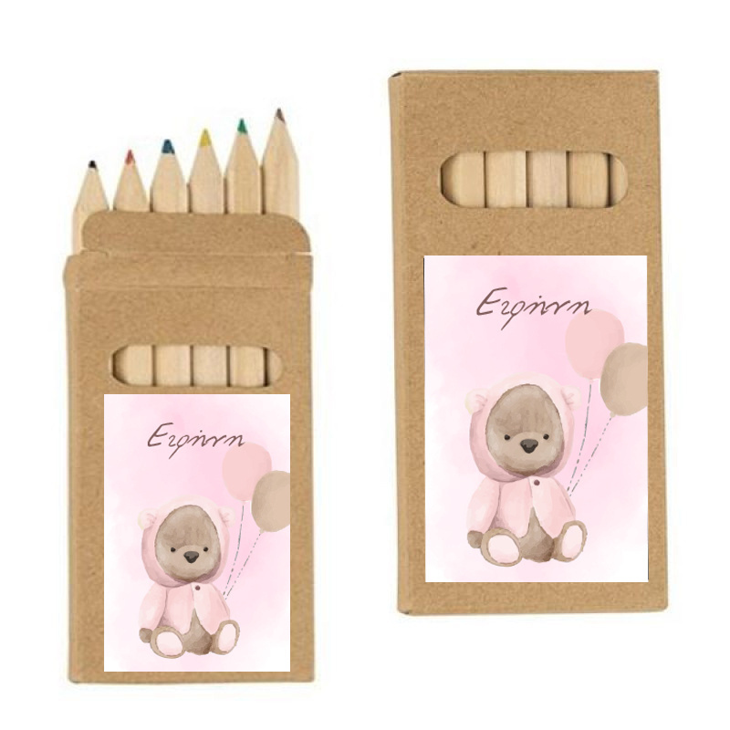 Σετ Ξυλομπογιές 6τμχ Αρκουδάκι για Κορίτσι με όνομα ένα υπέροχο δωράκι για τους μικρούς μας φίλους. Για την Βάπτιση και το Πάρτι σας.
