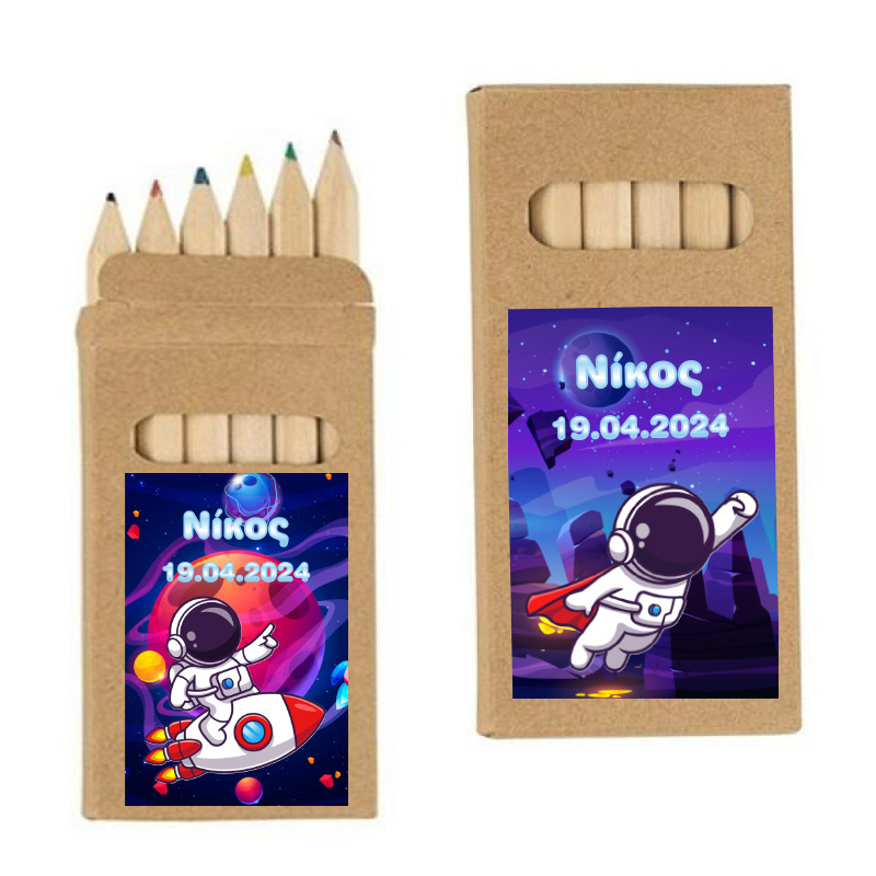 Σετ Ξυλομπογιές 6τμχ Διάστημα με όνομα ένα υπέροχο δωράκι για τους μικρούς μας φίλους. Για την Βάπτιση και το Πάρτι σας.