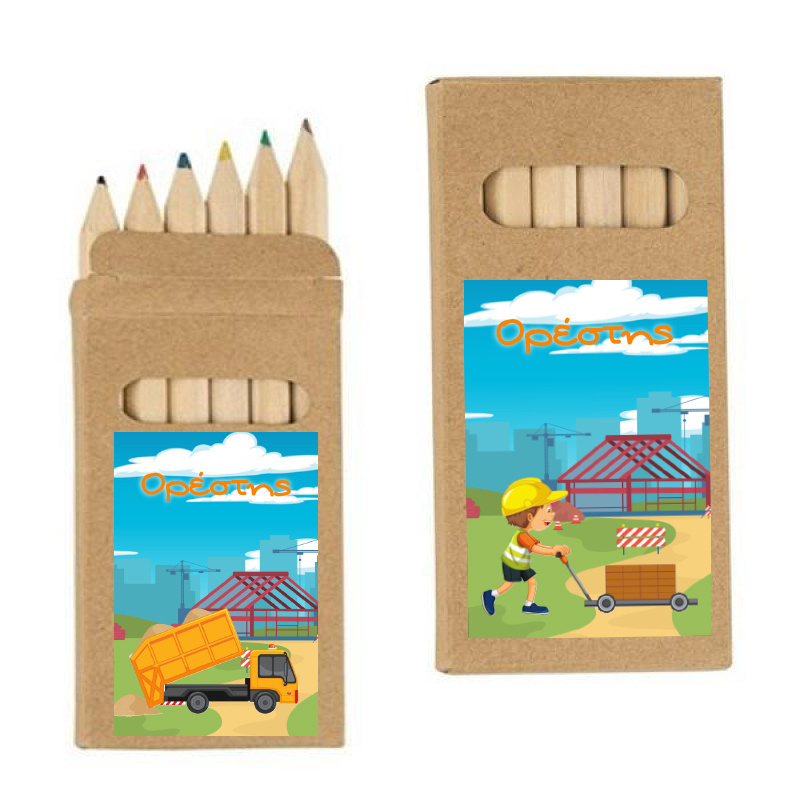 Σετ Ξυλομπογιές 6τμχ Φορτηγά με όνομα ένα υπέροχο δωράκι για τους μικρούς μας φίλους. Για την Βάπτιση και το Πάρτι σας.