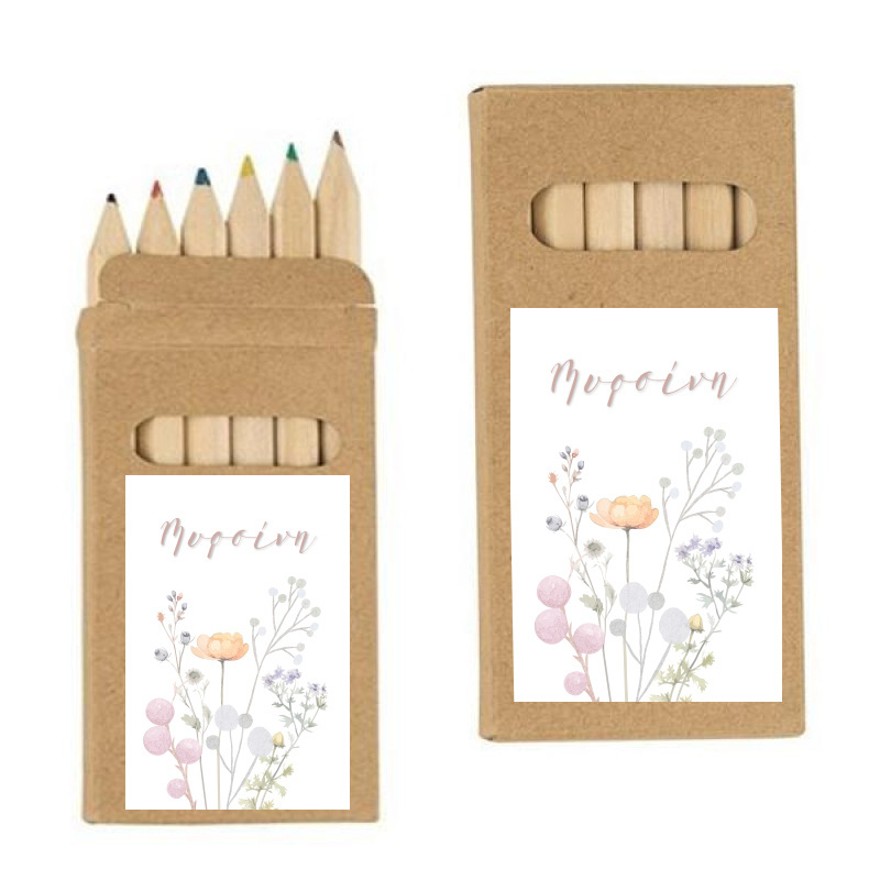Σετ Ξυλομπογιές 6τμχ Floral Pastel με όνομα ένα υπέροχο δωράκι για τους μικρούς μας φίλους. Για την Βάπτιση και το Πάρτι σας.
