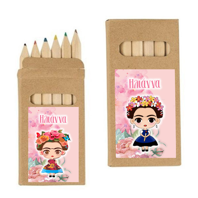 Σετ Ξυλομπογιές 6τμχ Frida Kahlo με όνομα ένα υπέροχο δωράκι για τους μικρούς μας φίλους. Για την Βάπτιση και το Πάρτι σας.