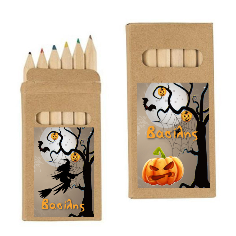 Σετ Ξυλομπογιές 6τμχ Halloween με όνομα ένα υπέροχο δωράκι για τους μικρούς μας φίλους. Για την Βάπτιση και το Πάρτι σας.