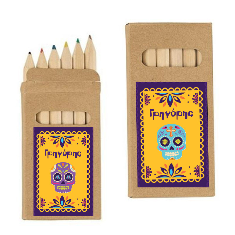 Σετ Ξυλομπογιές 6τμχ Halloween Νεκροκεφαλές με όνομα ένα υπέροχο δωράκι για τους μικρούς μας φίλους. Για την Βάπτιση και το Πάρτι σας.