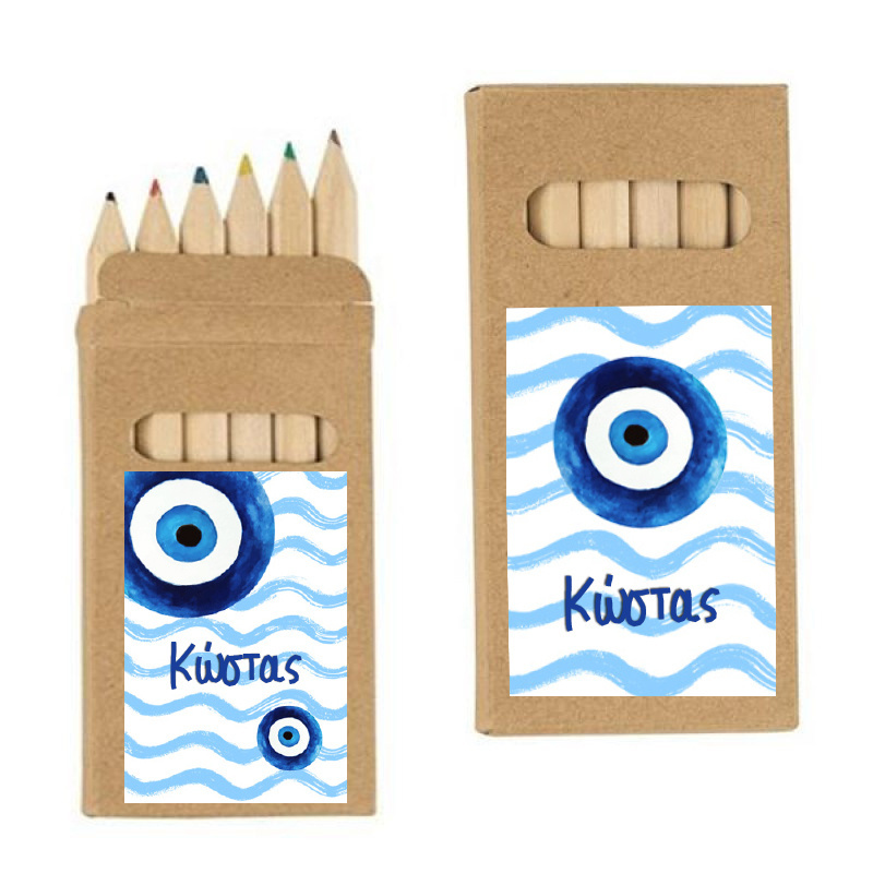 Σετ Ξυλομπογιές 6τμχ Μάτι Αγόρι με όνομα ένα υπέροχο δωράκι για τους μικρούς μας φίλους. Για την Βάπτιση και το Πάρτι σας.