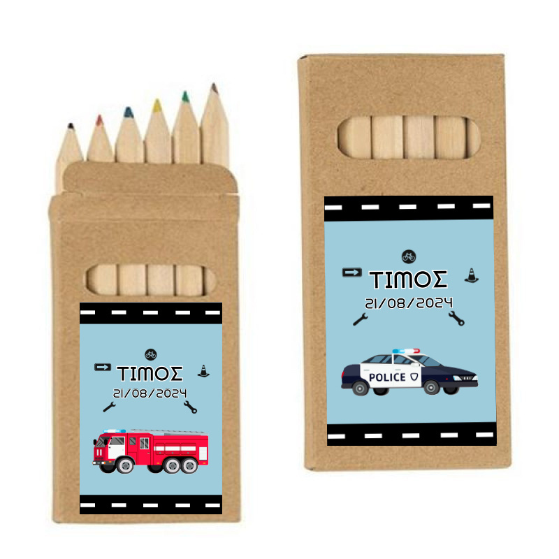 Σετ Ξυλομπογιές 6τμχ On The Road με όνομα ένα υπέροχο δωράκι για τους μικρούς μας φίλους. Για την Βάπτιση και το Πάρτι σας.