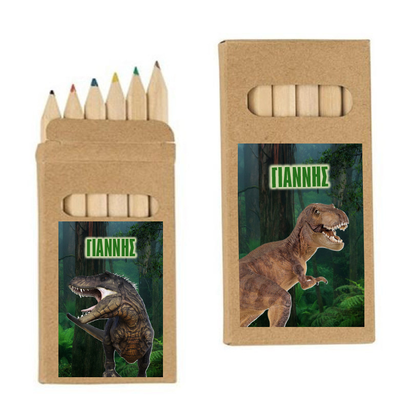 Σετ Ξυλομπογιές 6τμχ T-Rex με όνομα ένα υπέροχο δωράκι για τους μικρούς μας φίλους. Για την Βάπτιση και το Πάρτι σας.
