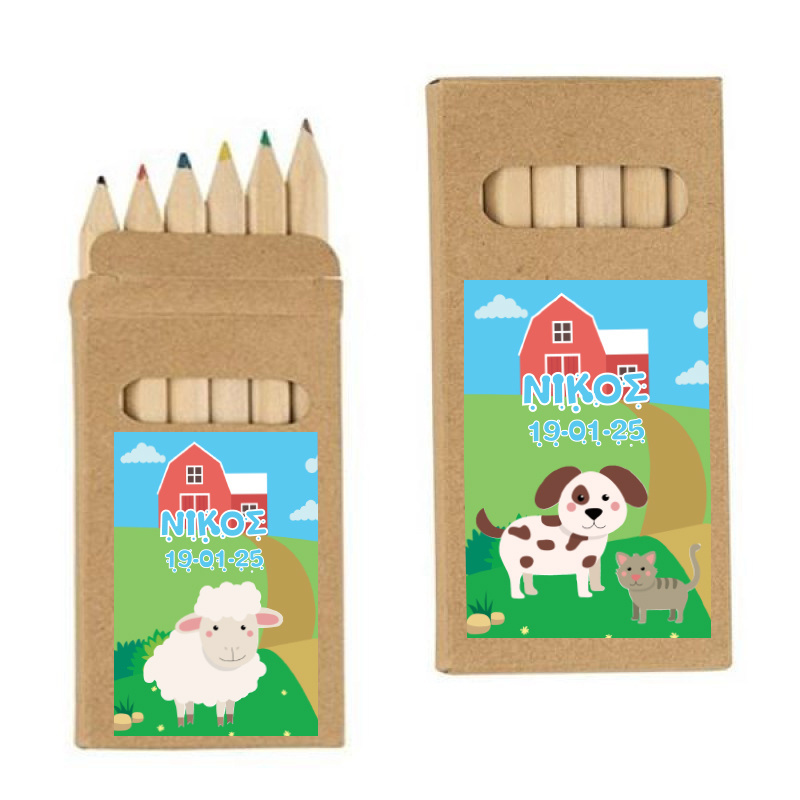Σετ Ξυλομπογιές 6τμχ Ζωάκια Φάρμας με όνομα ένα υπέροχο δωράκι για τους μικρούς μας φίλους. Για την Βάπτιση και το Πάρτι σας.