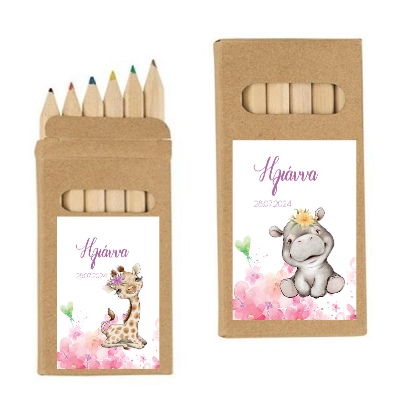 Σετ Ξυλομπογιές 6τμχ Ζωάκια ζούγκλας Κορίτσι με όνομα ένα υπέροχο δωράκι για τους μικρούς μας φίλους. Για την Βάπτιση και το Πάρτι σας.