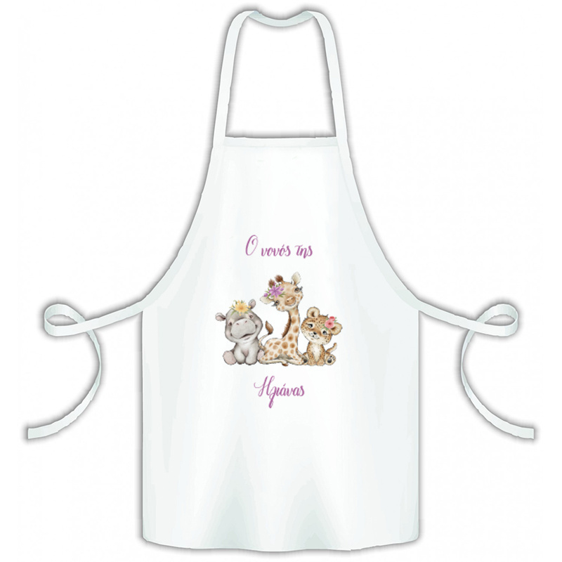 Προσωποποιημένη ποδιά για τον νονό ή τη νονά, με σχέδιο Ζωάκια Ζούγκλας Κορίτσι, για τη βάπτιση του μικρού σας!